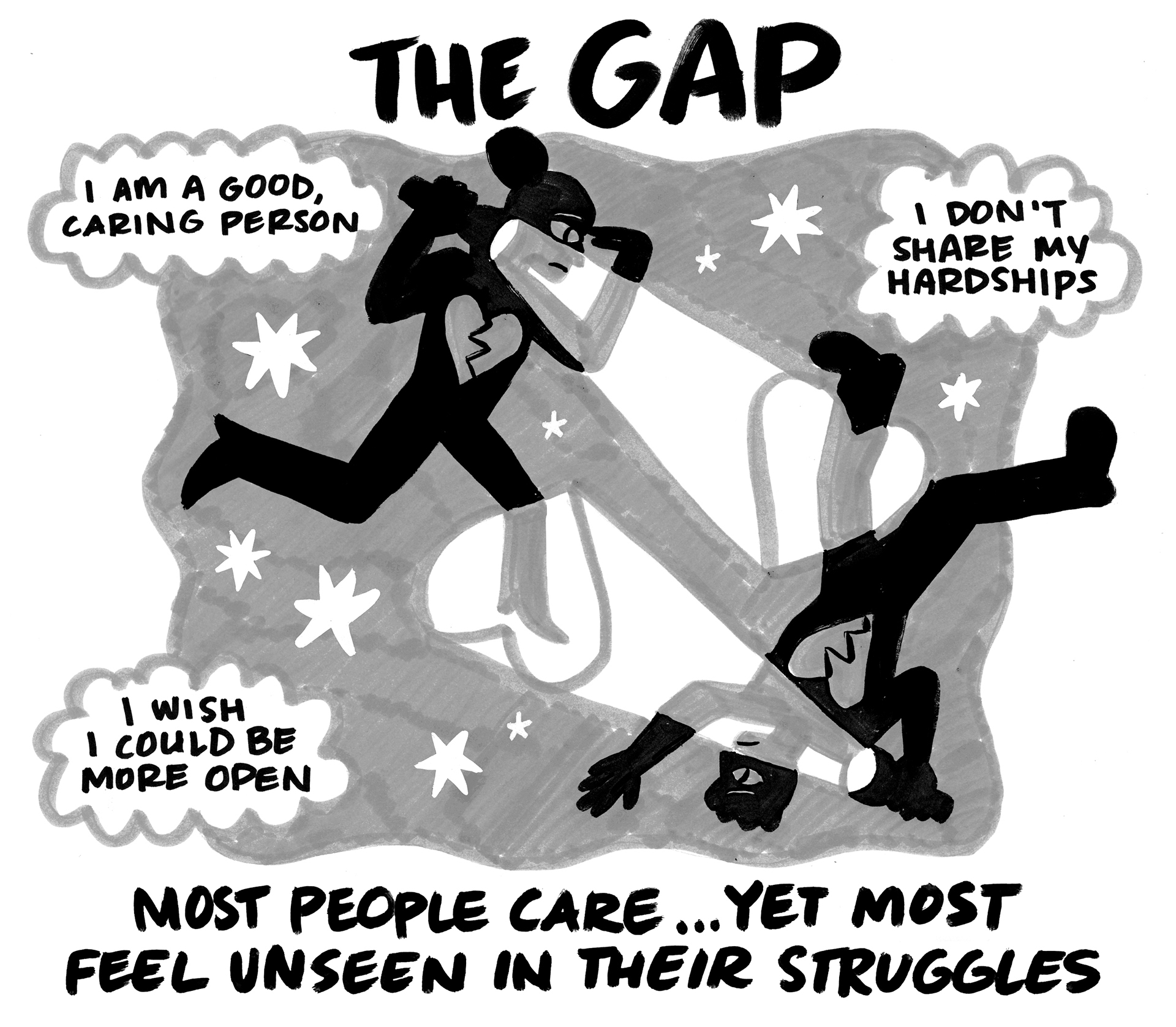 We brought unexpected interpretations. How do you show the disconnect that happens when people want to connect, but don’t know how? This “gap” illustration became her favorite. It drives conversations. “My favorite illustration was something I would have never told you to draw,” said Jen. “It opened the door for us to talk about our work in different ways.”